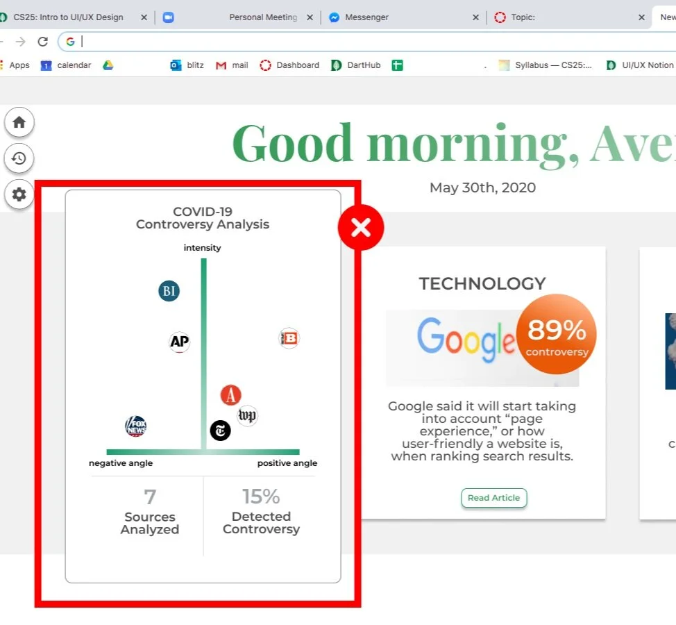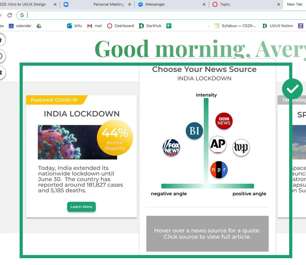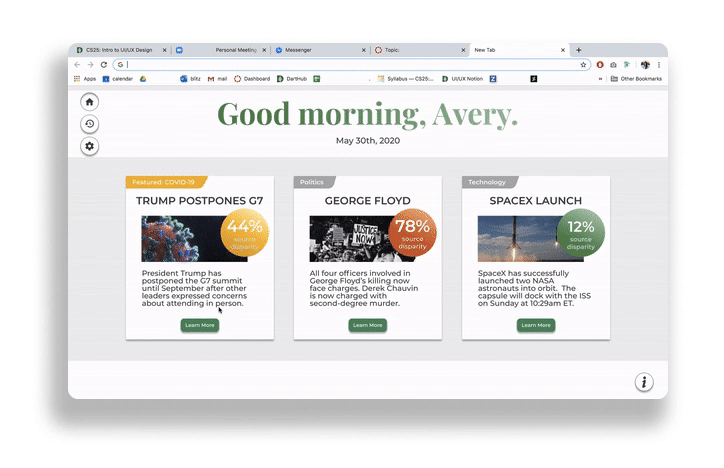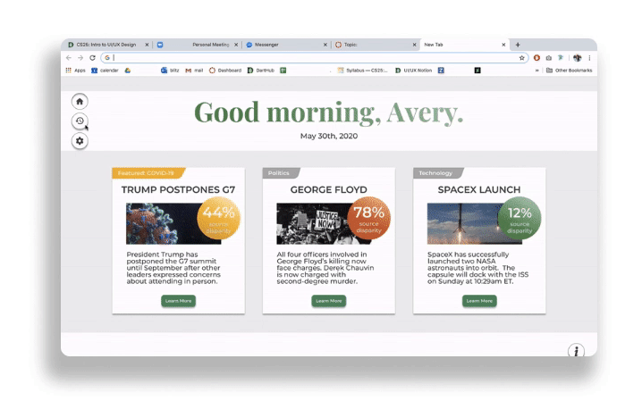 For our the Introduction to UI/UX Design course’s final project, we chose to tackle the prompt “Information and Trust in a Digital Democracy.” In the midst of a global pandemic with heightened political tensions, staying informed and identifying truths has become more and more difficult. Not only is there a barrage of daily headlines from all corners of the internet, but the information itself can be riddled with biases.